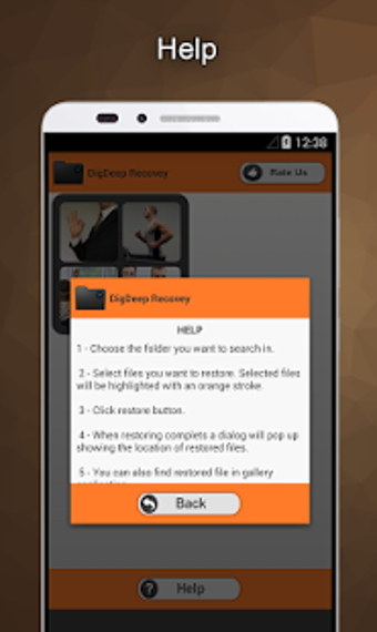 Recuperar Imágenes Eliminadas es un programa que, como su propio nombre indica, te permitirá volver a disfrutar en la memoria de tu dispositivo de aquellas fotografías y dibujos que borrases por accidente o por un mal funcionamiento del dispositivo. Esto es posible gracias a que la información de estos archivos no es eliminada por completo hasta que no se reescribe, por lo que si no ha sucedido este proceso se pueden recuperar sin problemas. En concreto, esta aplicación busca tanto en la memoria interna como en la tarjeta SD que esté instalada.